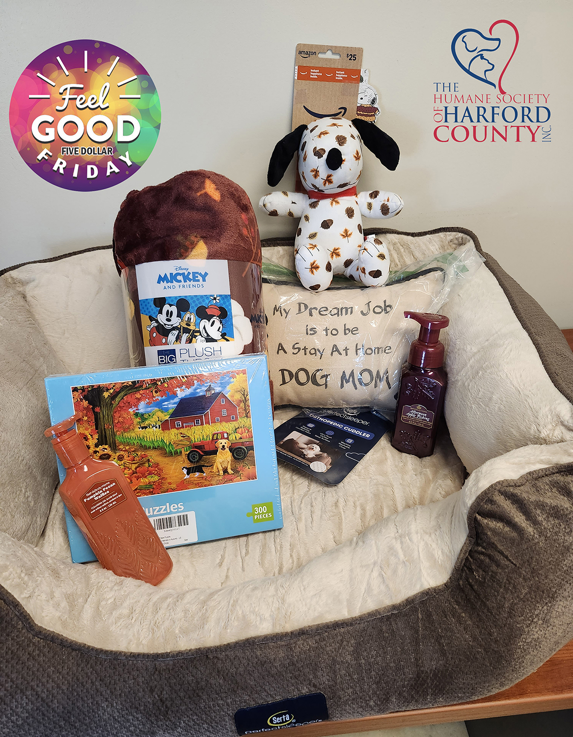 Every Friday we’ll feature a new raffle item to benefit the animals at the shelter. Each $5 donation gets you ten (10) raffle entries to win, so the more you donate, the more tickets are entered and the greater your chance to win. And don’t worry…we’ll fill out all those tickets for you.