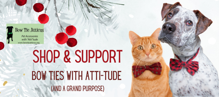 Welcome December! This month Bow Tie Atticus has designated HSHC as their giveback charity and is donating anywhere from $1 to $3 per bowtie! Just click the green bowtie to shop.