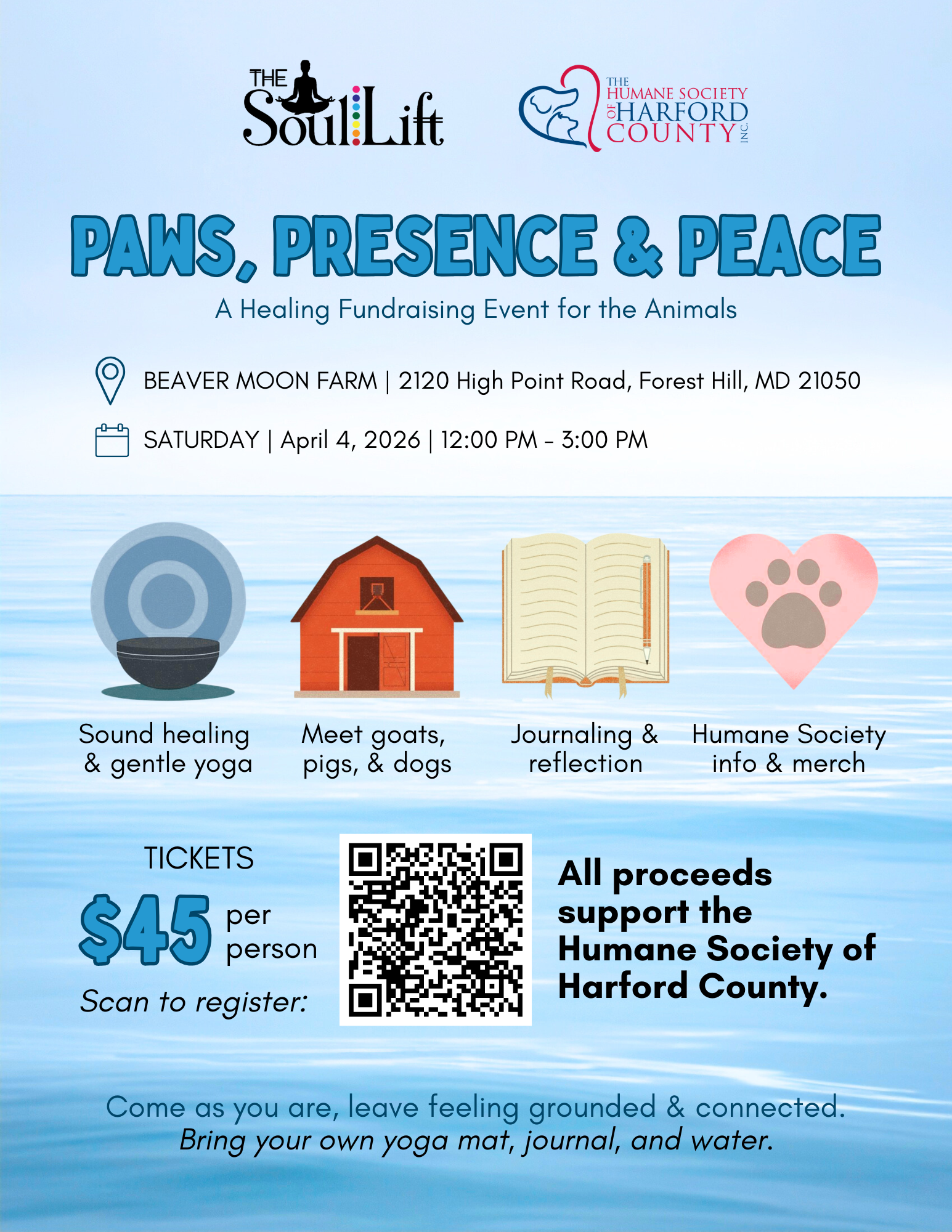 A Healing Fundraising Experience Benefiting the Humane Society of Harford County