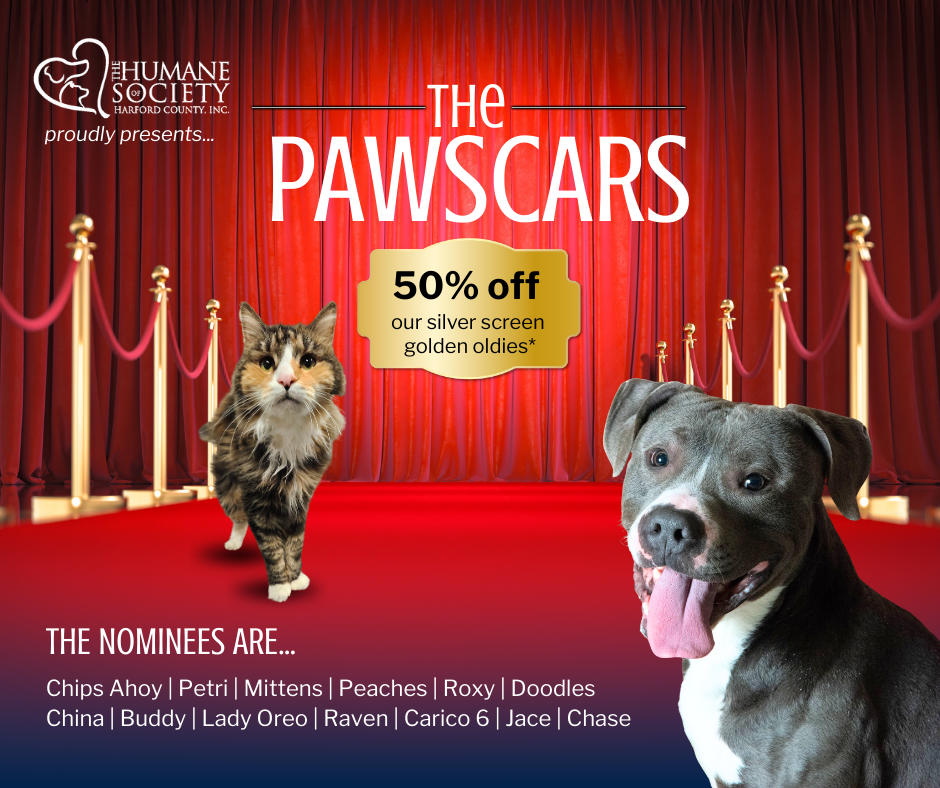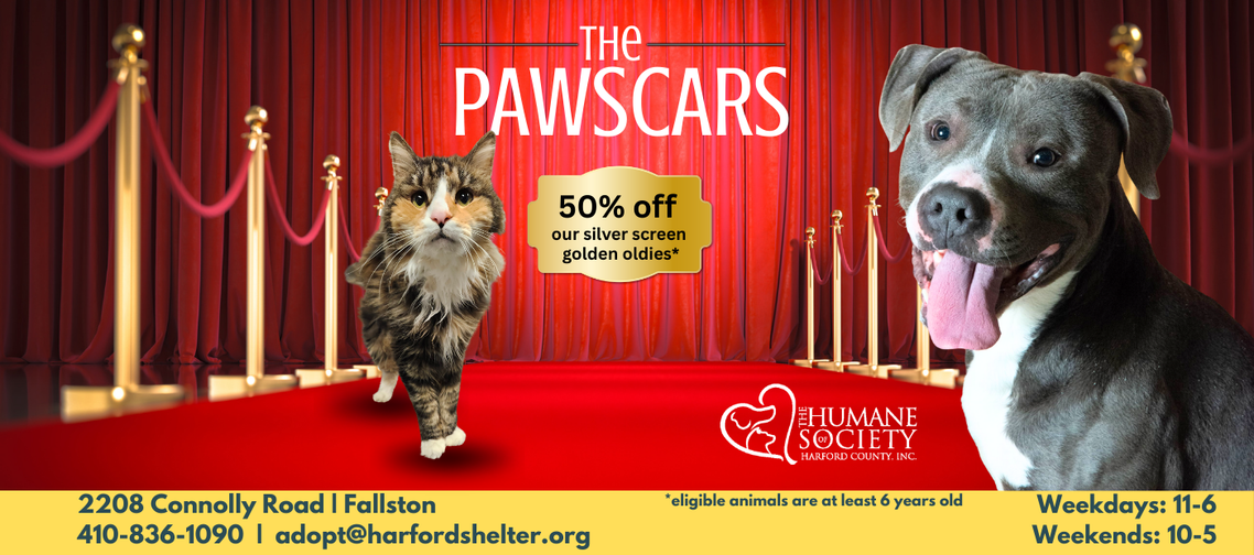 All March you’re invited to the PAWscars where the stars of our show are at least 6 years old. There’s no red carpet, no champagne, and gowns and tuxes are not required – our pets don’t care about any of that. They only care what’s in your heart, so fall in love with an older pet and get 50% off your adoption!